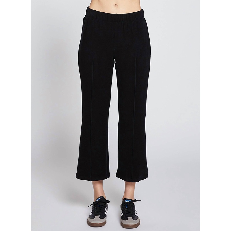 Upgrade your wardrobe with these cropped pants, designed to merge sophistication and wearability. The tailored fit ensures ultimate comfort during long days or nights out.Discover the Honeyluxe Kick Flare Pants by STATESIDE, a chic and versatile addition to your wardrobe. These solid black flared leg pants, crafted from cotton, offer a stylish cropped length with a 25.5″ inseam. Designed with practicality in mind, these pants feature pockets and a convenient pull-on closure. Care – Machine wash and lay flat to dry.