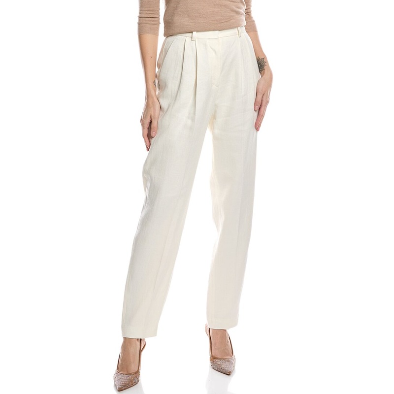 Elevate your casual wardrobe with the Hugo Boss Tefike Linen-Blend Trouser. Crafted from a luxurious linen-blend fabric in an open white hue, these trousers feature a flattering pleated front, belt loops, and four-pocket styling. The inseam measures approximately 31 inches with a 12.5-inch rise, making them a versatile and stylish addition to your closet. The zip fly with button and slide tab closures provide a secure fit, while the high-quality materials ensure long-lasting wear. Pair these trousers with a blouse and heels for a chic office look or dress them down with a simple tee and sneakers for a relaxed weekend ensemble. Imported and dry clean only, these trousers showcase Hugo Boss’s commitment to quality and style.