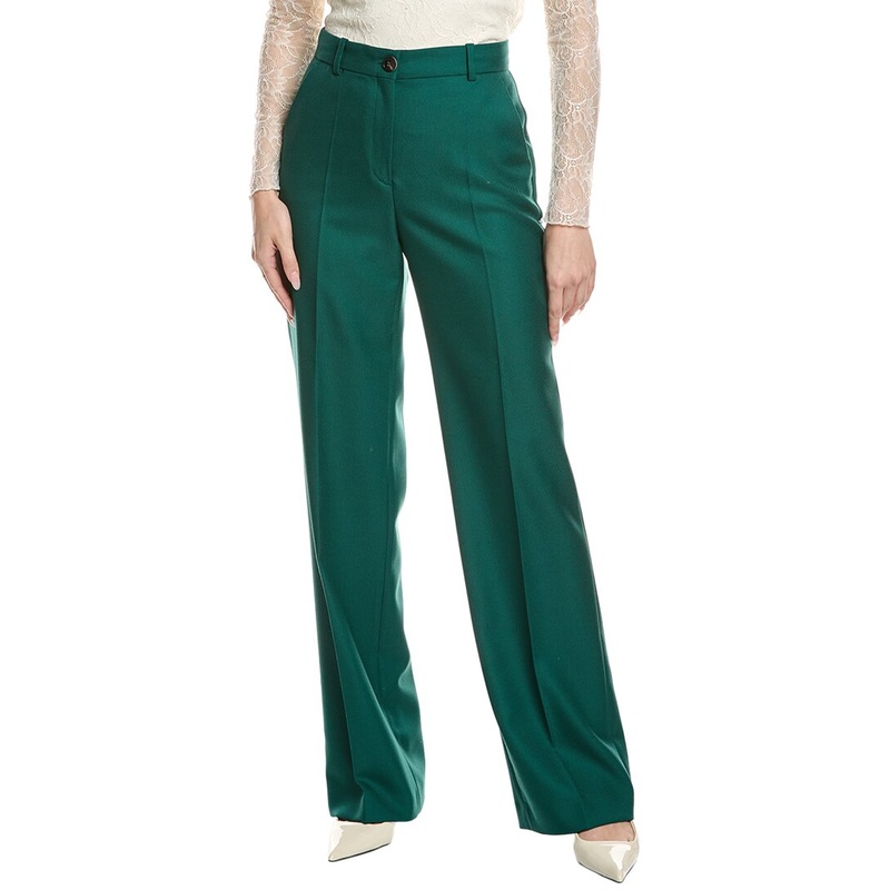 Introducing the Hugo Boss Tireka Wool Trouser, a stylish and versatile addition to your wardrobe. Crafted from 100% wool in a chic open green color, these trousers feature dual front angled pockets and belt loops for a polished look. The inseam is approximately 35 inches with an 11-inch rise, and the model is 5’10’ wearing a size DE 38/US 6. Complete with a zip fly and button closure, these trousers offer both style and comfort. Whether you’re dressing for the office or a casual weekend outing, the Hugo Boss Tireka Wool Trouser is a versatile choice. Dry clean only. Imported. Elevate your wardrobe with this must-have piece from Hugo Boss.