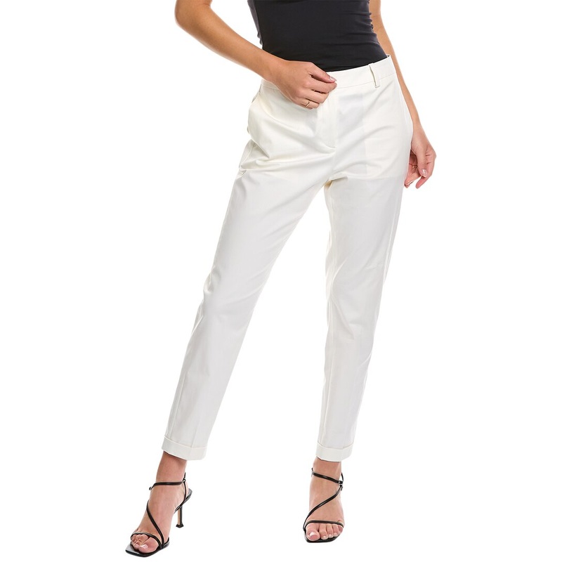 Elevate your casual wardrobe with the Hugo Boss Trouser for women. Made from a blend of 97% cotton and 3% elastane, these stylish trousers feature a classic open white design with dual front angled pockets, belt loops, rolled cuffs, and dual back welt pockets. The inseam measures approximately 25 inches, making them the perfect length for everyday wear. The zip fly with button closure ensures a secure fit, while the imported fabric is easy to care for with a simple machine wash. Embrace the individualist perspective of the Hugo Boss brand by adding these chic trousers to your closet today. Model is 5’11 and is wearing a size 4, with measurements that may vary slightly by size. Perfect for combining businesswear and athleisure, these trousers are a versatile addition to any woman’s wardrobe.