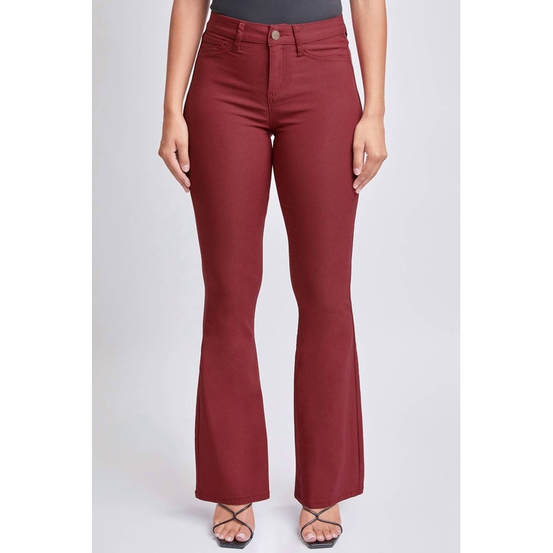 Stay on trend with these stylish boot cut pants that are fit to perfection. The perfect combination of comfort and fashion, you'll be grabbing for these all season long! Introducing the Hyperstretch High Rise Flare Pant by YMI in a captivating Dark Rose, p