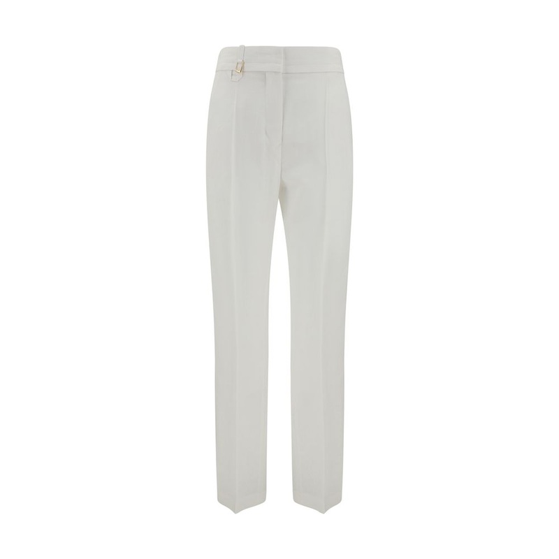 The Le Pantalon Tibau linen Pants combine elegance and practicality, with a front zipper and gold hook-and-eye closure adding sophistication. The straight leg and side and back welt pockets give a clean, modern design, while side slits at the bottom offer added comfort and a stylistic touch. Ideal for a cool, sophisticated look, they are perfect for warmer days.