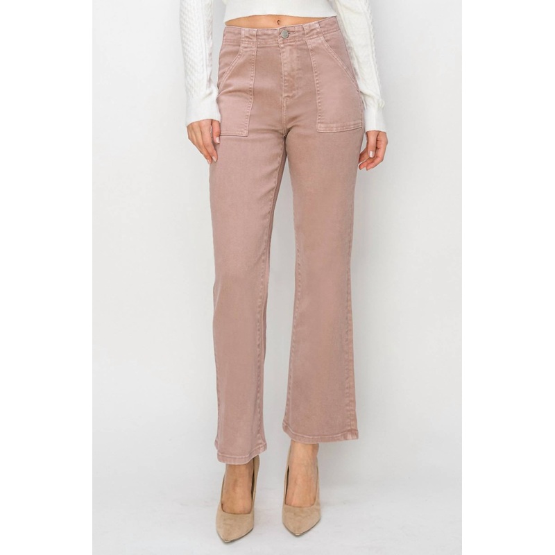 Introducing the Jaycee High Rise Patch Pockets Ankle Flare by RISEN, a chic addition to your wardrobe in a trendy mauve hue. These pants boast a flattering 10.5″ rise and a 28″ inseam, with a stylish flared leg. Made from a comfortable cotton blend of 98% cotton and 2% spandex, they include functional patch pockets and a secure button closure. Ideal for creating a standout look, these pants effortlessly blend fashion with practicality.