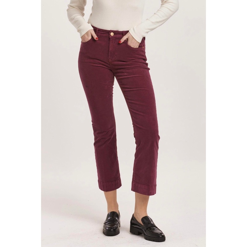 These pants offer a stylish and comfortable fit, featuring a mid-rise waist and a cropped flare design. Made from 98% cotton and 2% spandex, they provide a soft feel with a slight stretch for added comfort. To maintain their quality, machine wash in cold water and tumble dry on low.