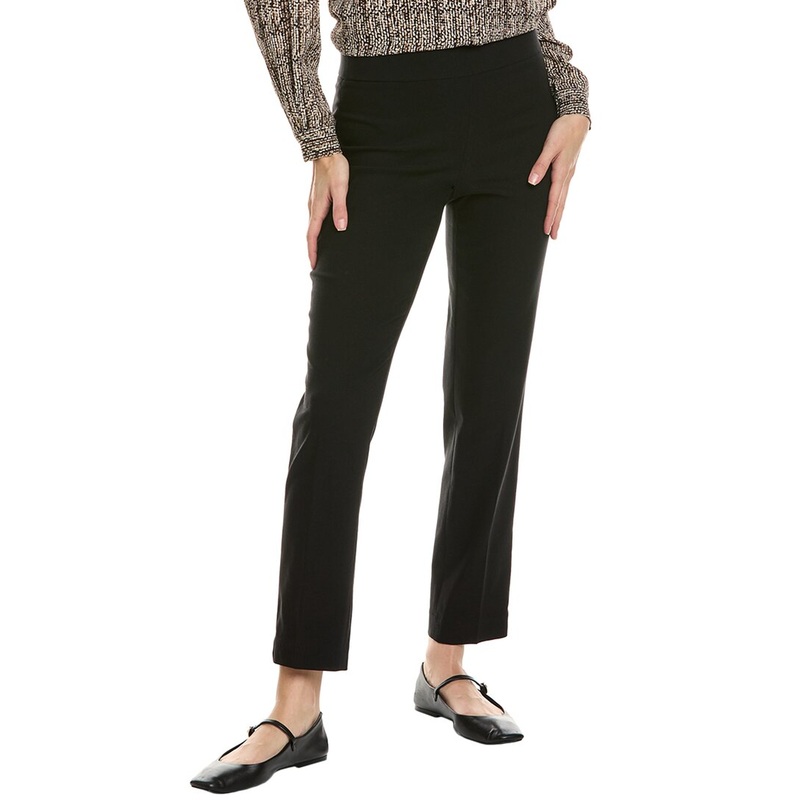 Introducing the Jones New York Seamed Straight Leg Pant in Jones Black. These casual pants feature an inseam of approximately 28.5 inches and a 10.5 inch rise. Designed with an elasticized waistband and dual back welt pockets, these pants are both stylish