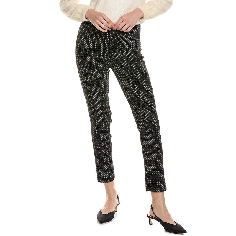 Introducing the Joseph Ribkoff Jacquard Straight Pant, a must-have addition to your casual wardrobe. These stylish pants feature an elasticized waistband for comfort and a sleek silhouette. Crafted from a blend of rayon, nylon, polyester, and spandex, these pants are both comfortable and flattering. The black color and jacquard pattern add a touch of sophistication to any outfit. With an inseam of approximately 28 inches and a 10-inch rise, these pants are designed to fit perfectly. Hand washable and made in Canada, these pants are sure to become a staple in your wardrobe. Shop now and elevate your casual style with Joseph Ribkoff. Model is 5’9 and is wearing a size 2. Measurements may vary slightly by size.