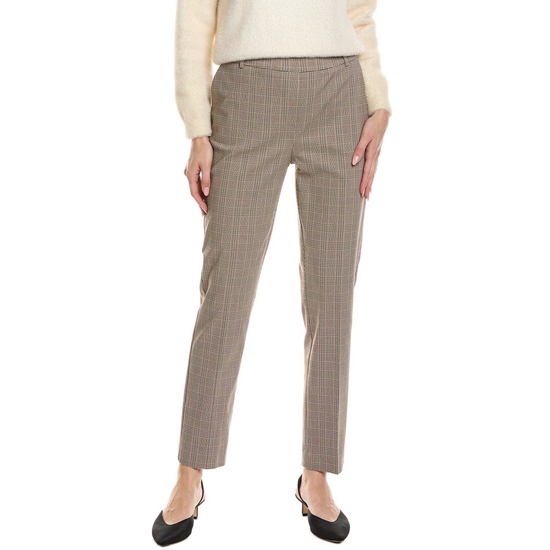 Introducing the Joseph Ribkoff Pull-On Pant, a stylish and comfortable addition to your wardrobe. This pant features a beige multicolor design with a flattering inseam of approximately 29 inches and a rise of 12 inches. The model is 5'9 and is wearing a si
