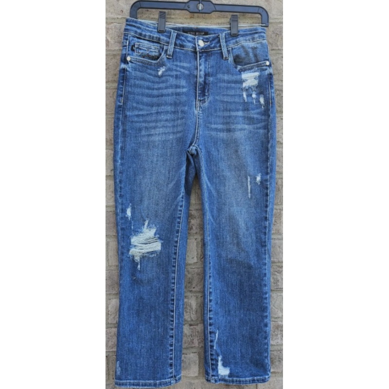 Judy Blue: Denim Delight Destroy Ankle Straight Jeans in Vivid Blue, Perfect Fit for a 26 Waist