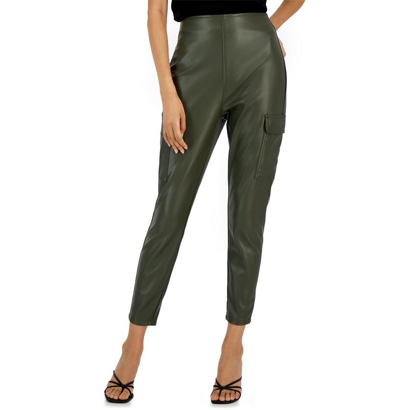 Juniors Womens High Rise Faux Leather Cargo Pants