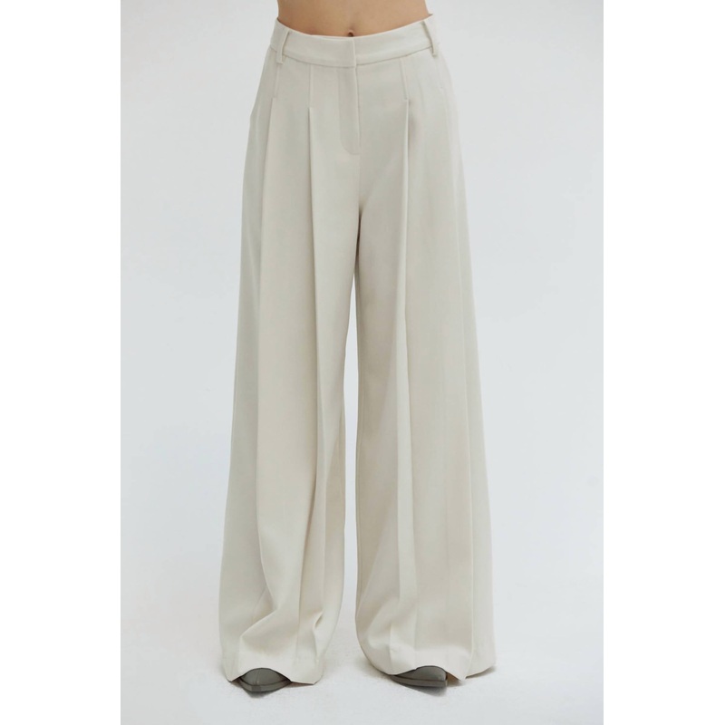 Sophisticated look with their high-rise fit and wide-leg silhouette. Crafted from a blend of 97% polyester and 3% spandex, these trousers are fully lined with 100% polyester for added comfort. They feature extended front pleats, practical belt loops, and b