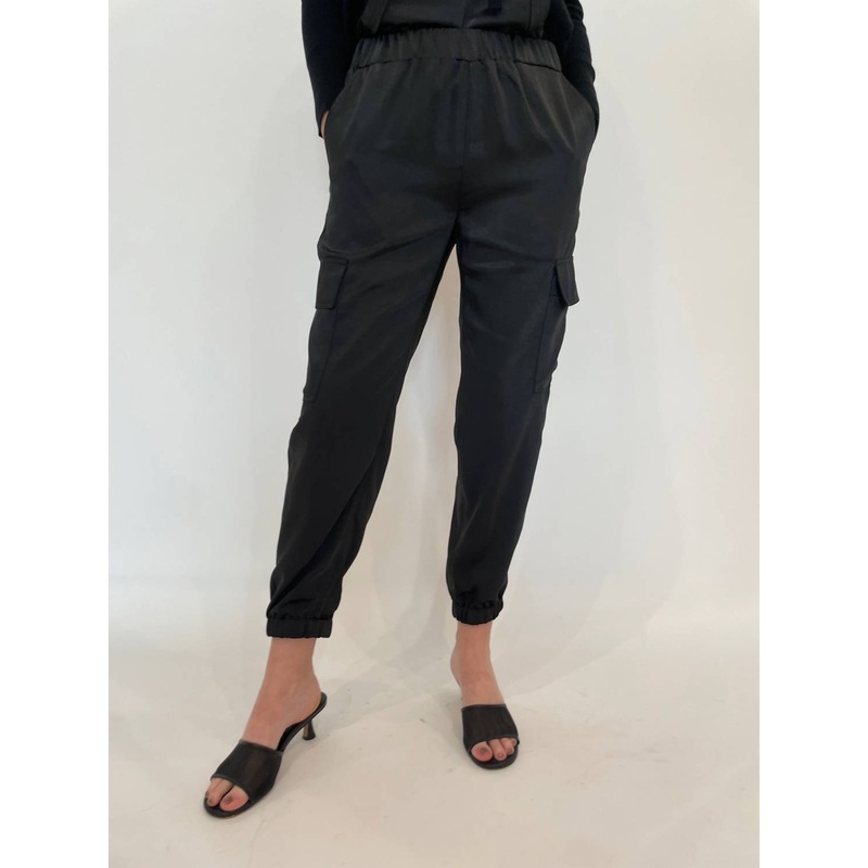 Crafted from 100% Polyester. These versatile pants feature a pull-on style with an elastic waistband and provide a relaxed fit for effortless wearability. Functional slant and cargo pockets, coupled with an elastic hem, ensure practicality and a flattering silhouette. Care for them with ease by machine washing, making these pants a luxurious addition to any wardrobe.