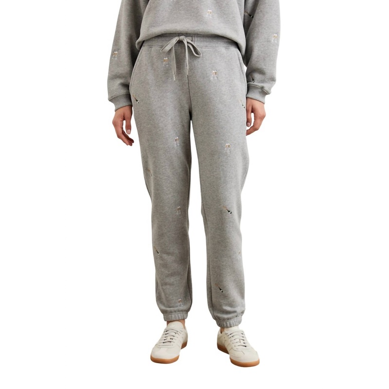 High-rise jogger crafted from super soft lounge terry, the Kingston features an elastic waist and cuff with a drawcord closure for an adjustable fit. Delicate champagne embroidery. 100% Cotton. Imported. Recommend ordering true to size. Inseam Length – 28 1/2″. Front Rise Length – 11 1/4″ (Measured from Small).