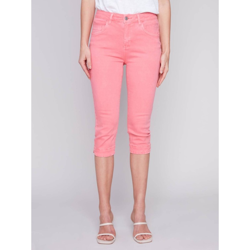 Knee High Capri Twill Pants In Flamingo