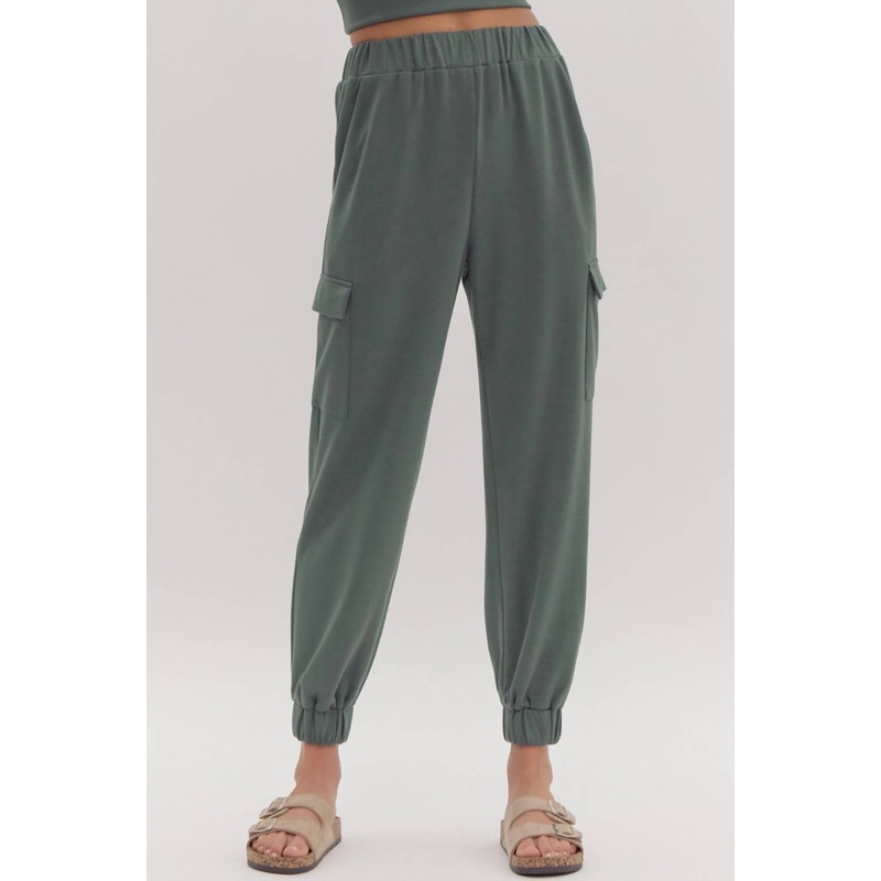 These track pants feature a high-waisted, elasticized design with a convenient pull-on closure and a tapered leg style. Made from a blend of 55% Rayon, 40% Polyester, and 5% Spandex, they strike the perfect balance between comfort and style. The practical side pockets add a functional touch to these lightweight, non-sheer joggers.