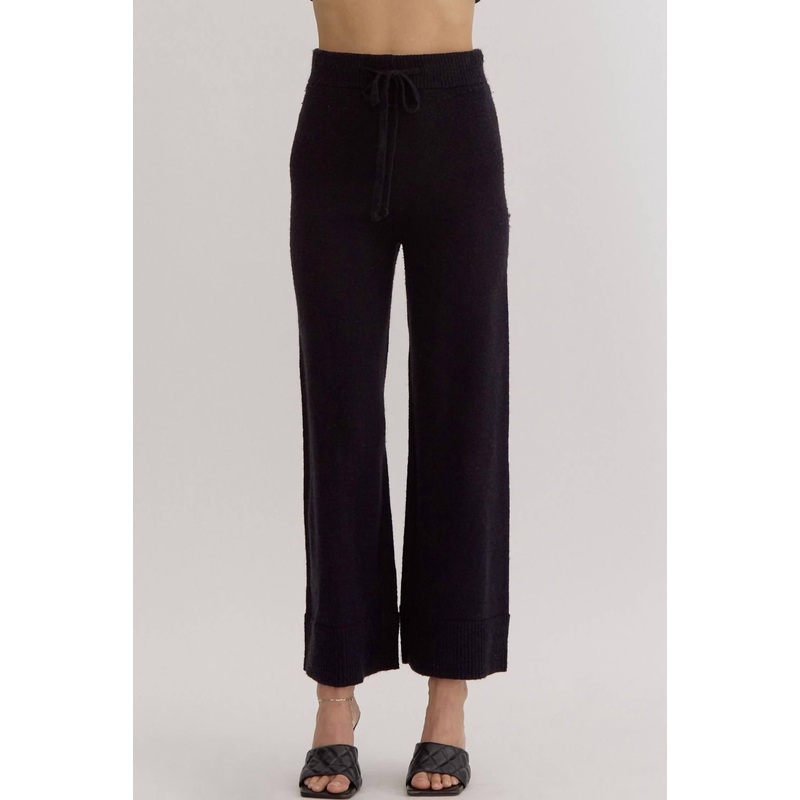 This straightleg pant is both stylish and comfortable. Did we mention the fit is perfection?Introducing the Knit Drawstring Pants by Entro, perfect for a stylish and comfortable look in classic black. These womens textured pants feature a straight leg desi