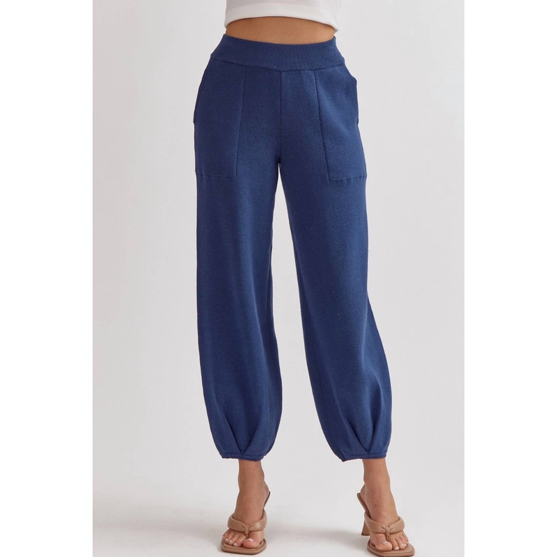 Knit High Waisted Joggers In Navy
