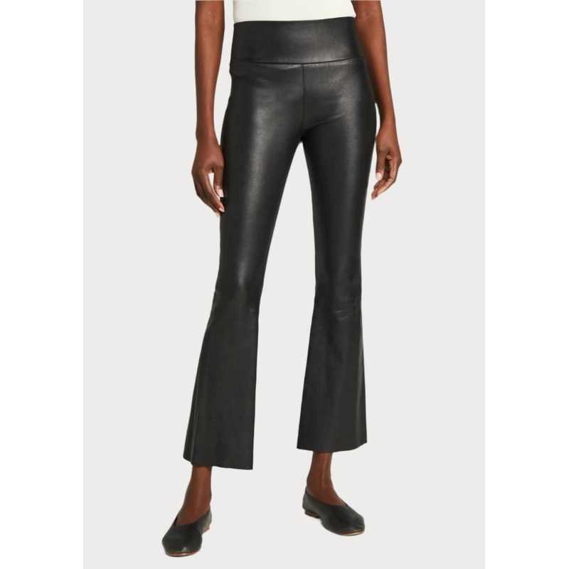 Slightly flared pants are all the rage right now and these are no exception. Pair these with your favorite tee for a more casual look, or with your favorite button-up blouse for an evening out.SPRWMN High-waisted leather crop flare pantsPull on. Elastic wa