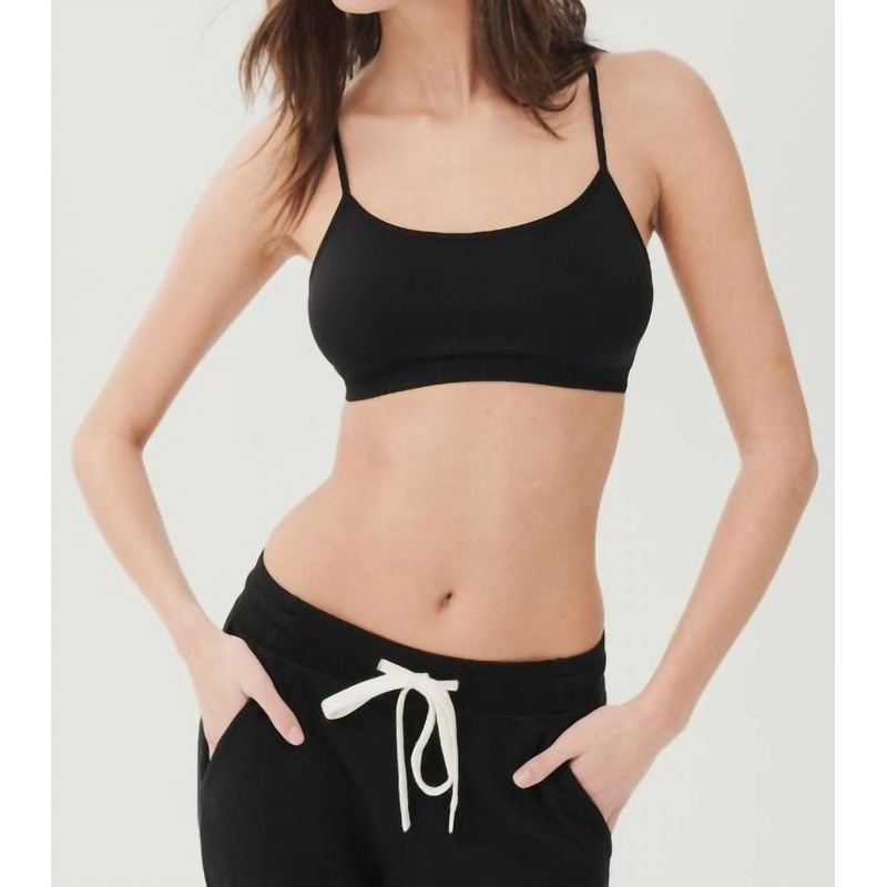A sports bra that has it all – style, function and support.The Loren Seamless Bra by SPLITS59 is a must-have for active women seeking both comfort and versatility. This solid black sports bra is crafted from a high-quality nylon blend, designed seamlessly for activities like running, yoga, and more. It features a chafe-free construction that offers ease of movement and fits smoothly under any top. Care instructions include machine washing and laying flat to dry, making it as easy to care for as it is to wear. Model is 5’10” and wears a size XS/S.