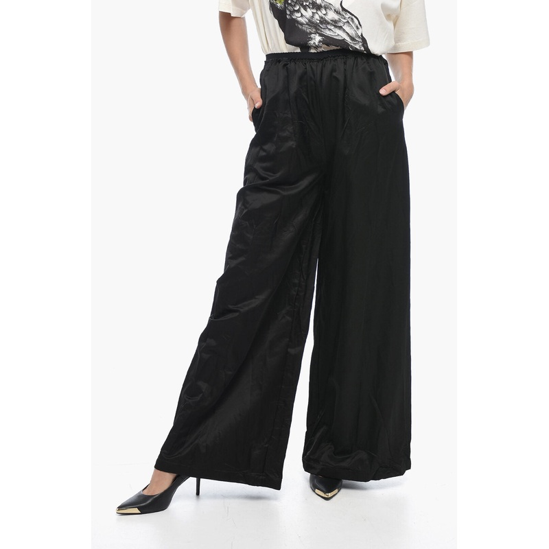 Spring-Summer, Black, 2 pockets, Pleated detailing, Made in Italy, Frills, Creased, Elastic waistline, P594345