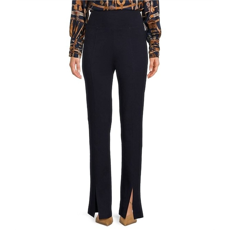 Wide elasticized waistband for comfort. Front seam details for added style. Easy fit with a straight hemline. Unlined for a lightweight feel. Pull-on construction for effortless wear. Approx. 32" inseam. 63% Rayon, 32% Nylon, 5% Spandex. Machine wash, line