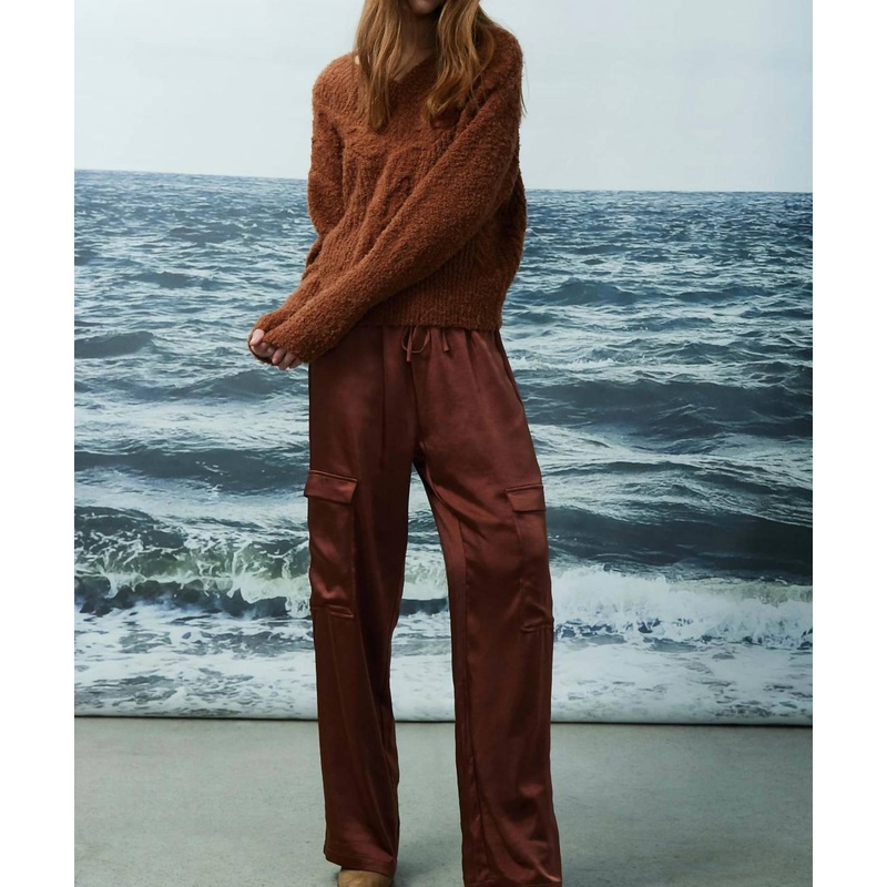 Miranda Cargo Satin Pants In Marsala Brown