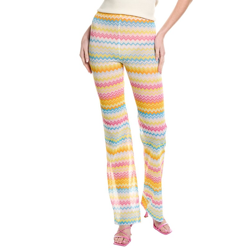 Introducing the 'Missoni pant' from the renowned brand M Missoni. These stylish pants are perfect for women seeking casual yet chic attire. The pants feature a beautiful Sm8no color/pattern, with an inseam of approximately 34 inches and an 11-inch rise. Th