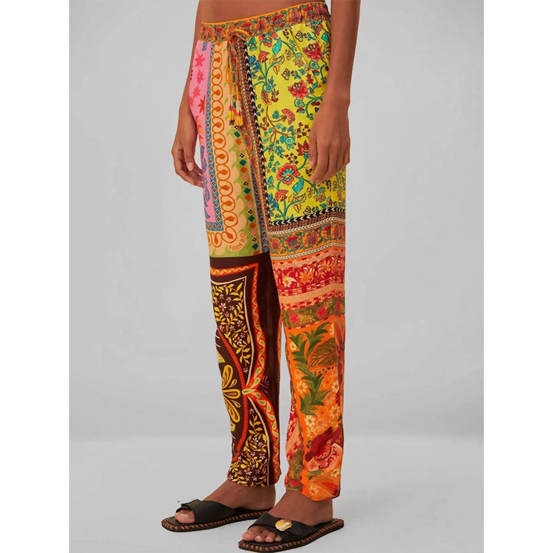 A straightleg pant that workes season after season. Dress these up with your favorite blouse or keep it casual with your go-to tee.Eclectic patterns and vintage hues make the MIXED SCARVES PANTS a unique bottom to behold. A simple drawstring waist makes th