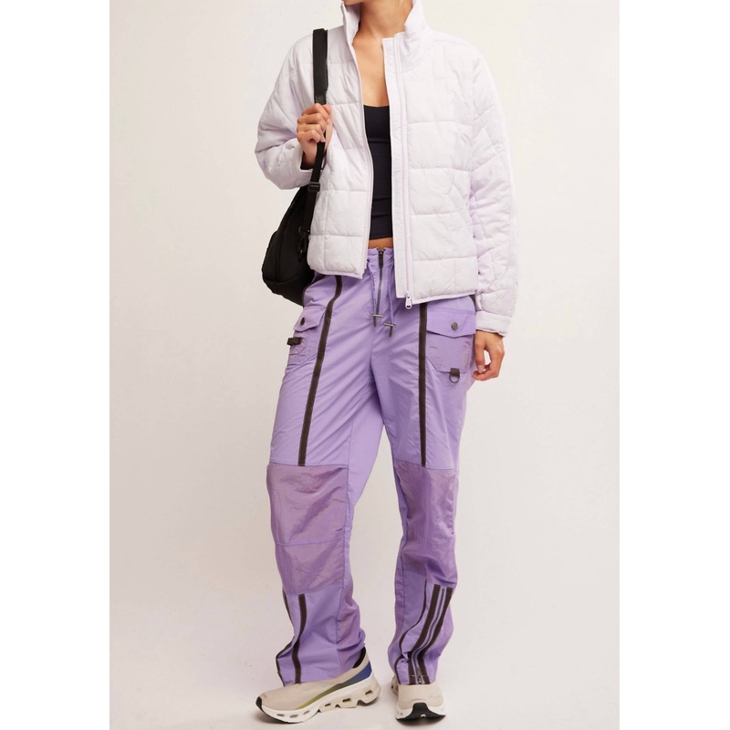 Elevate your activewear collection with the Free People Movement Moonbeam Pants in a charming lavender hue. Designed with a relaxed fit, these wide-leg pants feature a 29-inch inseam, mid-rise waist, and a convenient zip closure. The solid pattern and func