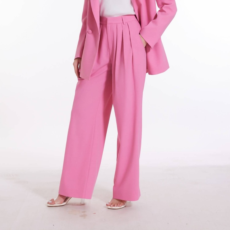 Presenting the Nadja Oversized Pleated Trouser by George Patrick, a perfect blend of modern style and relaxation. These trousers feature a relaxed fit with a high rise and wide leg, offering a versatile and comfortable silhouette. Crafted from an innovative material composition of 71% Polyester, 16% Rayon, 4% Spandex, 3% Wool, 3% Tencel, and 3% Acetate, they provide a soft yet durable texture. Made in China, these pink trousers include practical details like two front pockets and a zip closure, making them both chic and functional.