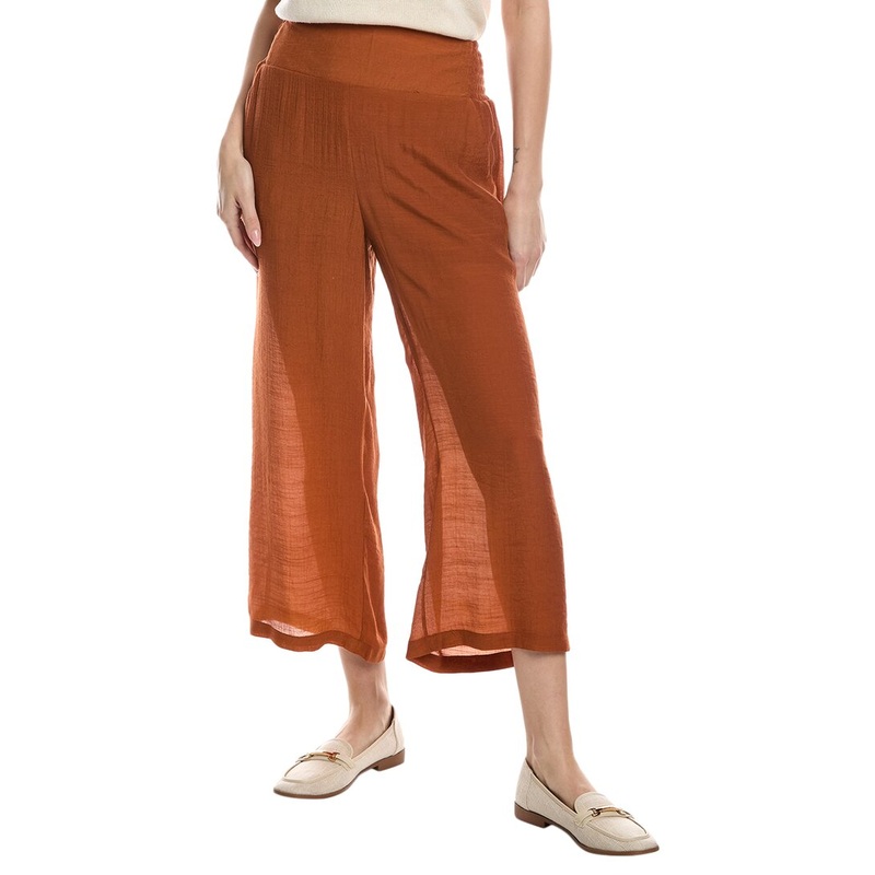 Elevate your casual wardrobe with the Nanette Nanette Lepore Wide Leg Pant in Gingerbread. Crafted from a luxurious blend of rayon and polyester, these pants feature a smocked back waistband and dual front angled pockets for added style and convenience. Wi