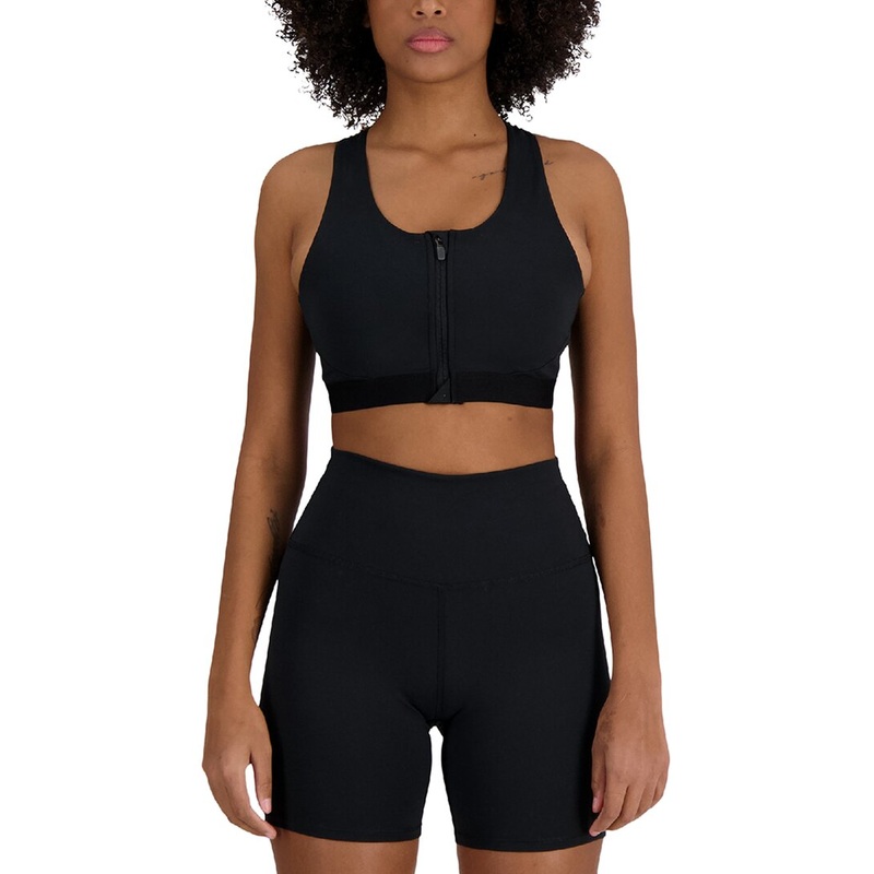 Stay comfortable and stylish during your workout with the New Balance Sleek Medium Support Pocket Zip Jacket. This zip-front jacket offers medium support and features a convenient pocket for storing your essentials. Made with a blend of recycled polyester and spandex, this jacket is both eco-friendly and comfortable. Machine washable for easy care, this jacket is a must-have for any active woman. New Balance is a favorite brand of professionals and home athletes alike, known for their high-quality activewear. Step up your activewear game with the Sleek Medium Support Pocket Zip Jacket in black from New Balance.