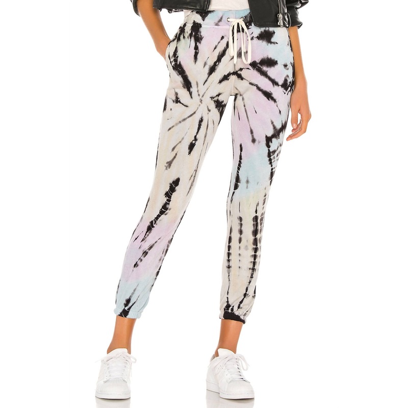 No gym necessary for these cool-girl joggers. SPIRAL TIE DYEElasticized drawstring waist.Side seam pockets.Back patch pocket.Elastic hem.French terry fabric.Made in USA.