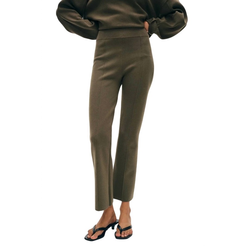 These double-knit pants boast an inseam length of 27″ and are crafted from a cotton blend of 79% Organic Cotton and 21% Lycra, offering a refined take on everyday wear. Designed with an elastic waistband for pull-on ease, their raised seams create an elongating effect on the legs. Hand wash and lay flat to dry.