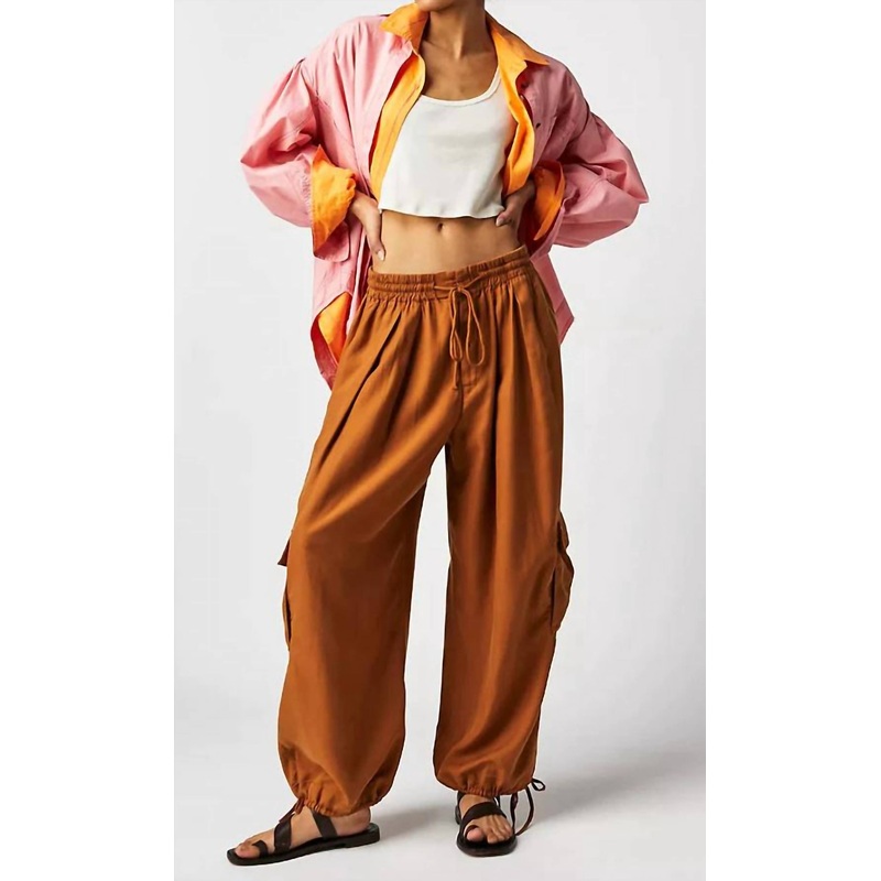 The perfect pant for running around town and looking cool while doing it.Fabric - Mid-weight, non-stretch weave. Cargo pockets. Rise - 13.75 in, Inseam - 29.25 in, Leg opening - 21.25 in. Covered elastic waist with drawstring. On-seam hip pockets.