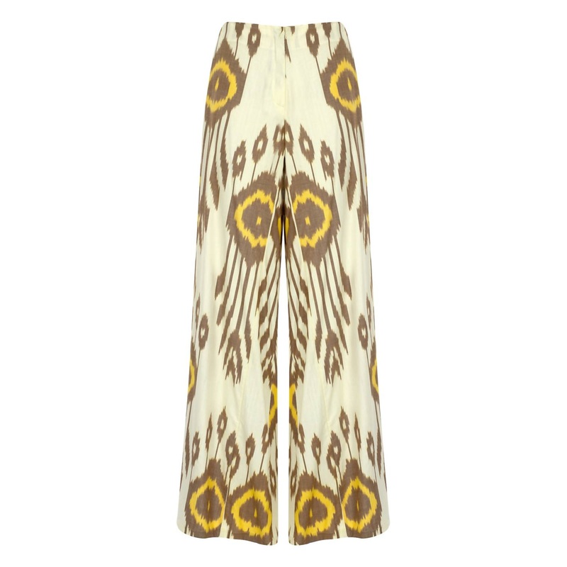 Discover the Palazzo Pant Side Slit by Punicana, a stylish masterpiece in a vibrant Brown-Yellow Ethnic pattern. Crafted from 100% Cotton, these wide-leg pants offer a relaxed fit perfect for breezy days. With a convenient zip closure, they provide an effo