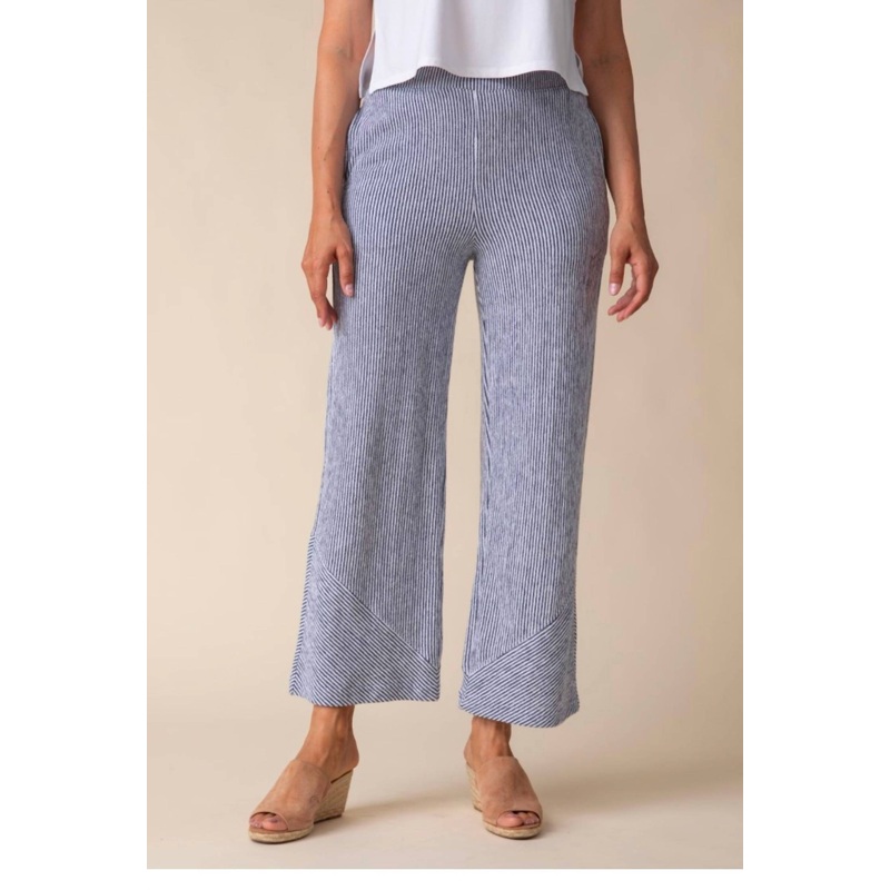 Introducing the Pasadena Stripe Pant by Habitat, a chic addition to your wardrobe in a stylish navy and white stripe. Designed with a high-rise waist, these pants feature a classic fit and wide leg style, perfect for a comfortable yet polished look. The pull-on closure ensures easy wear, while the inclusion of pockets adds practicality to the design. Suitable for any occasion, these pants effortlessly blend style with functionality.