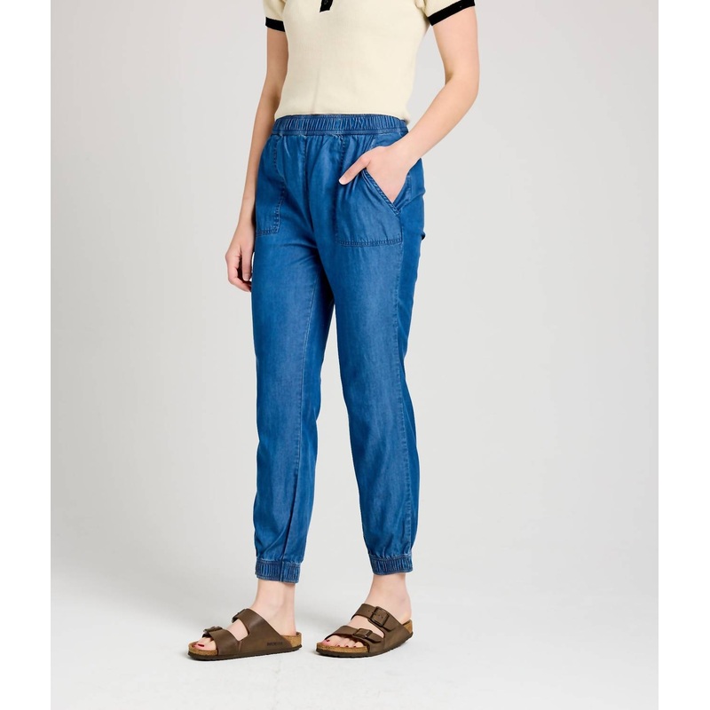 Pair these with your favorite sneakers for an effortlessly cool look.Discover the Phoebe Pant by Known Supply, crafted for comfort and style with a soft, sustainable Tencel fabric in a charming chambray hue. These track pants feature a mid-rise, classic fit with elasticized waist and ankles, complemented by a tapered leg style and an inseam of 28.75 inches. Designed with a solid pattern, they offer a pull-on closure and functional pockets. Perfect for a casual yet refined look, these pants make a versatile addition to your wardrobe.