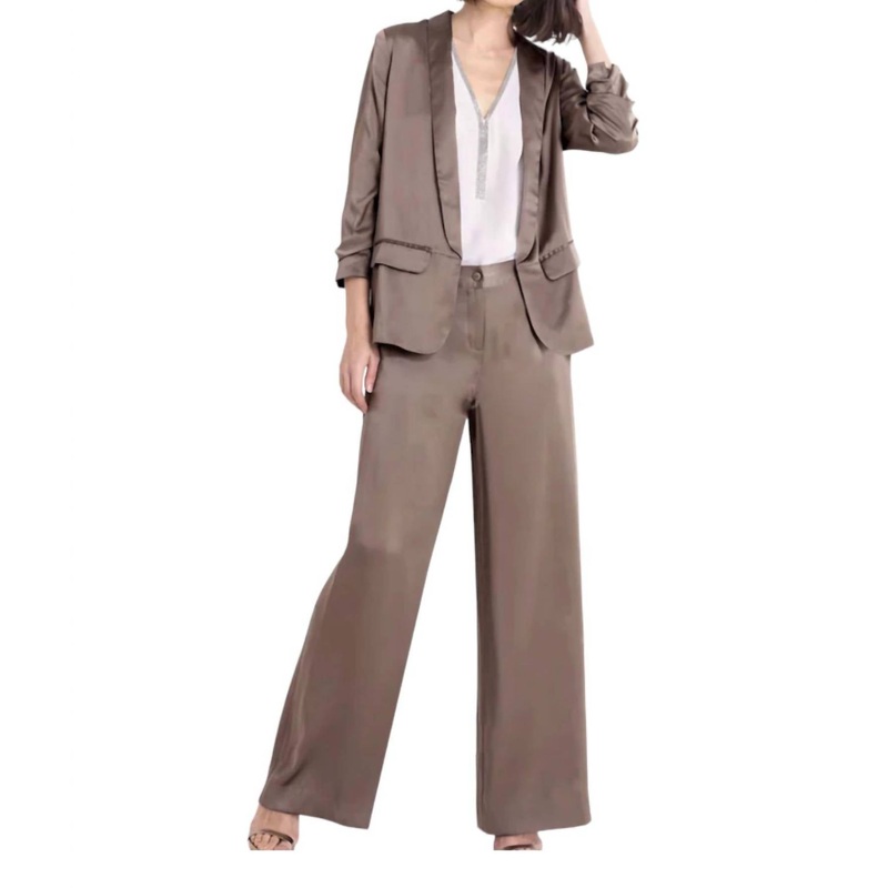 These easy wide-leg pants feature inseam pockets, a flat front, and back pockets with flaps. They have a back elastic waistband, front zip fly, and pull-on styling. Made from washed 100% silk charmeuse, they have a 32" inseam and a 10.75" front rise (measu