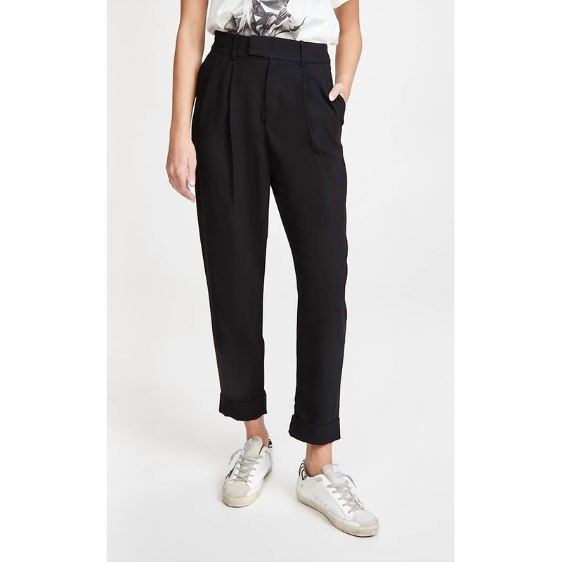 Upgrade your wardrobe with the Pleated Front Pant by BB Dakota, a sophisticated addition for any occasion. Designed with a polished, solid black finish, these trousers feature a flattering regular fit and a tapered leg style. Crafted from lightweight, 100%
