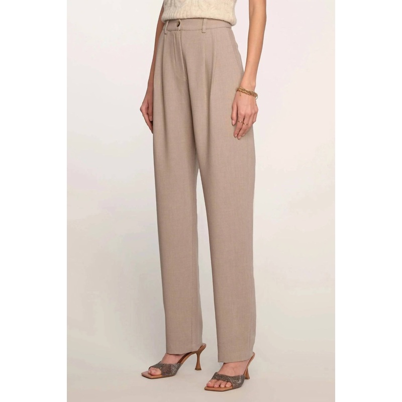 Introducing the Pleated Front Trouser by Heartloom, the epitome of effortless style tailored to perfection in a sophisticated beige hue. These trousers, crafted from a soft suiting blend of 69% Polyester, 25% Rayon, and 6% Spandex, feature a relaxed fit th