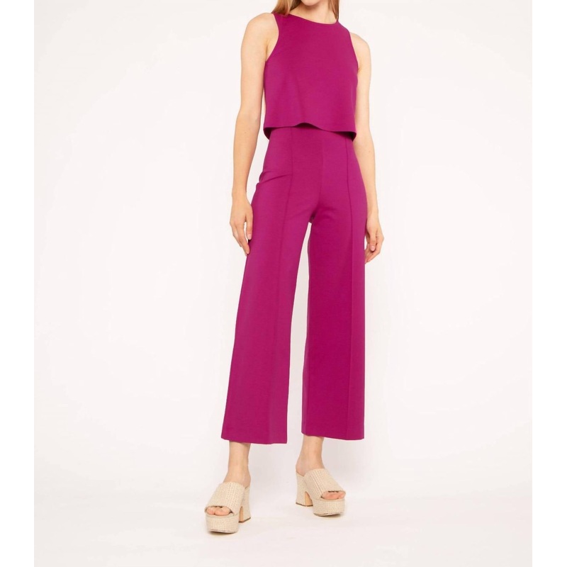 Upgrade your wardrobe with these cropped pants, designed to merge sophistication and wearability. The tailored fit ensures ultimate comfort during long days or nights out.Discover the Ponte Knit Cropped Pant by RIPLEY RADER, a standout piece in stunning fuchsia designed for women with a flair for fashion. These high-waist, classic straight-leg pants are composed of a comfortable viscose blend and feature a convenient pull-on closure. Proudly made in the US, they offer the structured appearance of classic tailoring with the comfort of a knit, creating a slimming and elongating effect. Care is simple – dry clean only and lay flat to dry, ensuring these pants remain a staple in your wardrobe.