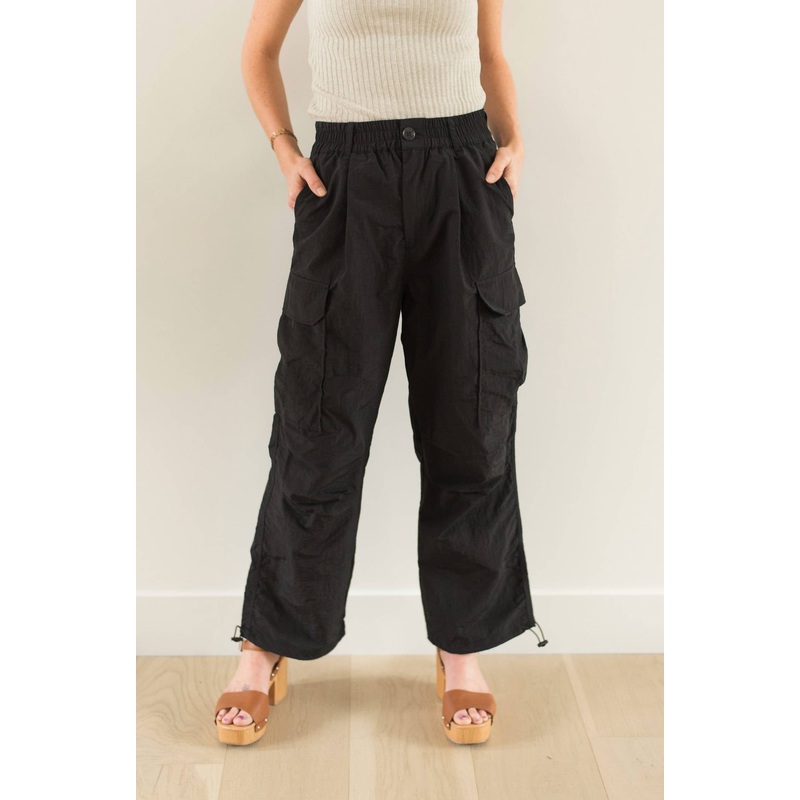 Step into effortless style with the Poussin Pants by DELUC, crafted in timeless black for the modern woman. These wide leg pants feature cargo pocket detailing and adjustable ankle straps for a customizable fit. Designed with a relaxed fit, the pants have