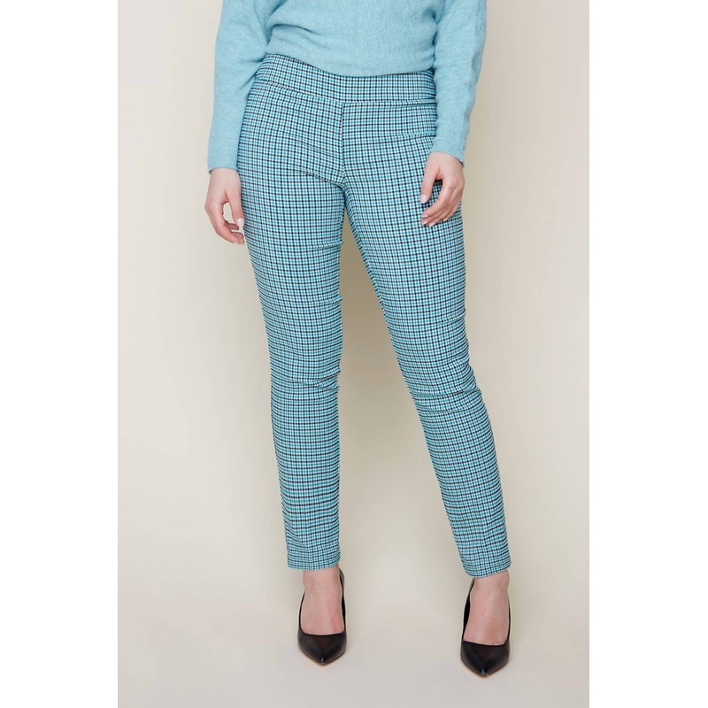 A skinny pant that is both flatering and comfortable. We love this style because it works great with boots, or without! Elevate your style with the Pull On Tummy Control Ankle Pant by Renuar in a distinctive Peacock hue. Designed with a high waist rise for added comfort and a sleek silhouette, these pants feature a 29-inch inseam and a chic skinny leg style. The rich blend of 75% Rayon, 16% Poly, 5% Nylon, and 4% Spandex ensures a comfortable fit, complete with practical pockets. Ideal for women seeking a plaid and check pattern, these pants offer easy pull-on closure for effortless wear.