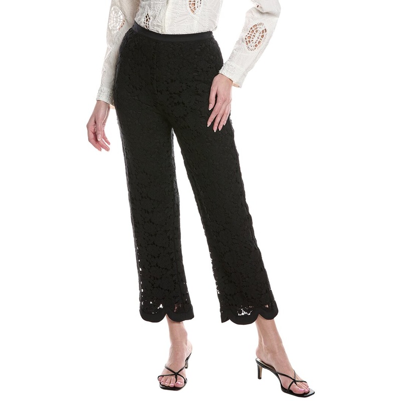 Elevate your casual wardrobe with the Rebecca Taylor Retro Lace Silk-Blend Pant. This black pant features a romantic lace construction with a scalloped hem, giving it a sophisticated and nostalgic feel. The inseam is approximately 28 inches with a 12.5 inc