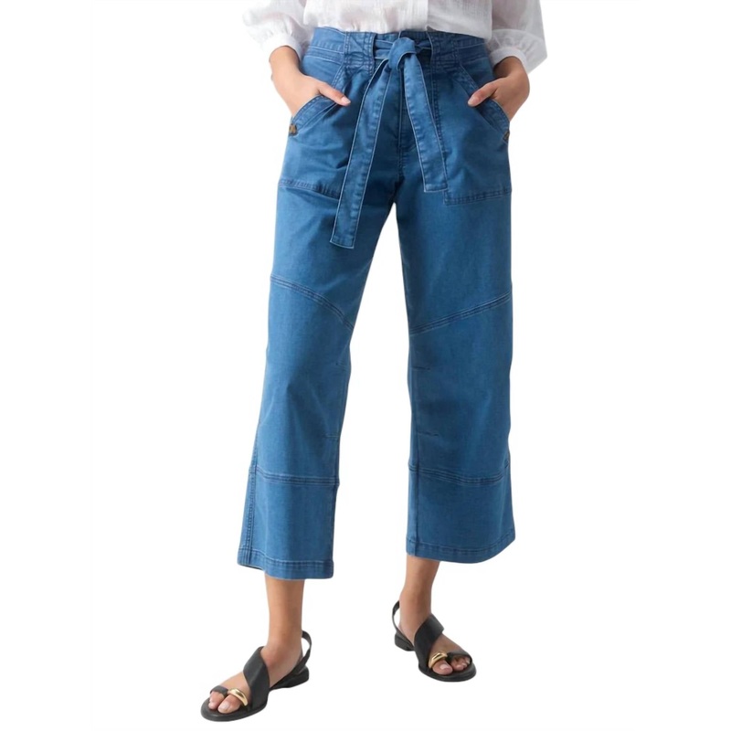 These semi-high rise pants feature a cropped wide leg with a relaxed fit, button front, zip closure, and sash. Made from 97% cotton and 3% spandex in a baby twill fabric. Machine wash cold. Imported.
