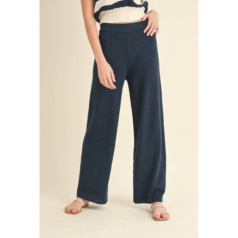 A straightleg pant that workes season after season. Dress these up with your favorite blouse or keep it casual with your go-to tee.Discover the RENEE KNIT PANTS by MIOU MUSE, where comfort meets sophistication in a chic, navy hue. Tailored for a women’s mid-rise fit, these straight-leg pants feature a seamless pull-on closure for ease and versatility. Designed with pockets and made from a solid knitted fabric, they offer both comfort and style, adaptable for any occasion. Ideal for those who appreciate effortless elegance in their wardrobe staples.