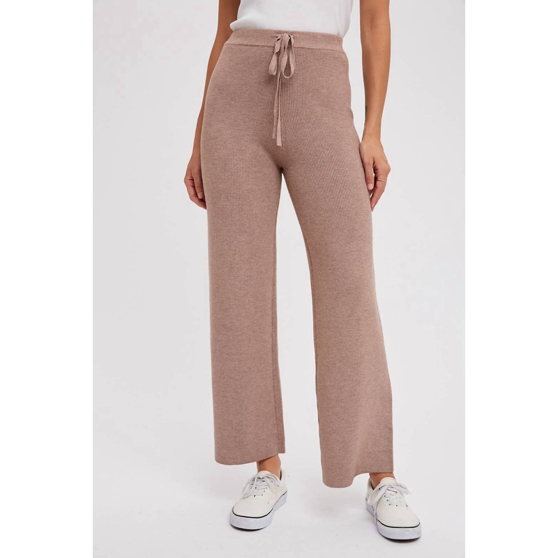 Embrace comfort and style with BluIvy's Ribbed Sweater Lounge Pants in a sophisticated latte hue, perfect for everyday wear. These wide-leg pants feature a relaxed fit and an elastic waistband with an adjustable tie closure for a personalized fit. The soli