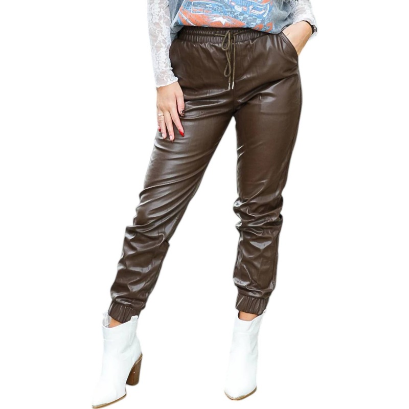 Pair these with your favorite sneakers for an effortlessly cool look.Crafted from premium leather. Brown joggers feature a pull-on closure for effortless wear. With a high-rise waist and practical pockets. Offer both fashion and functionality. Designed to