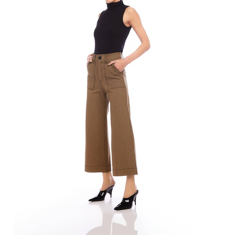 Upgrade your wardrobe with these cropped pants, designed to merge sophistication and wearability. The tailored fit ensures ultimate comfort during long days or nights out.These crop pants make the ultimate closet staple with their stretchy fabrication, houndstooth pattern and wide-leg comfort. These pants feature a zip fly with button closure and front slant pockets