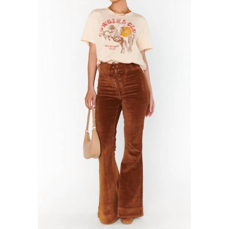 Stay on trend with these stylish boot cut pants that are fit to perfection. The perfect combination of comfort and fashion, you'll be grabbing for these all season long! Step into style with the Show Me Your Mumu Saddle Up Corduroy Pants, designed for a pe